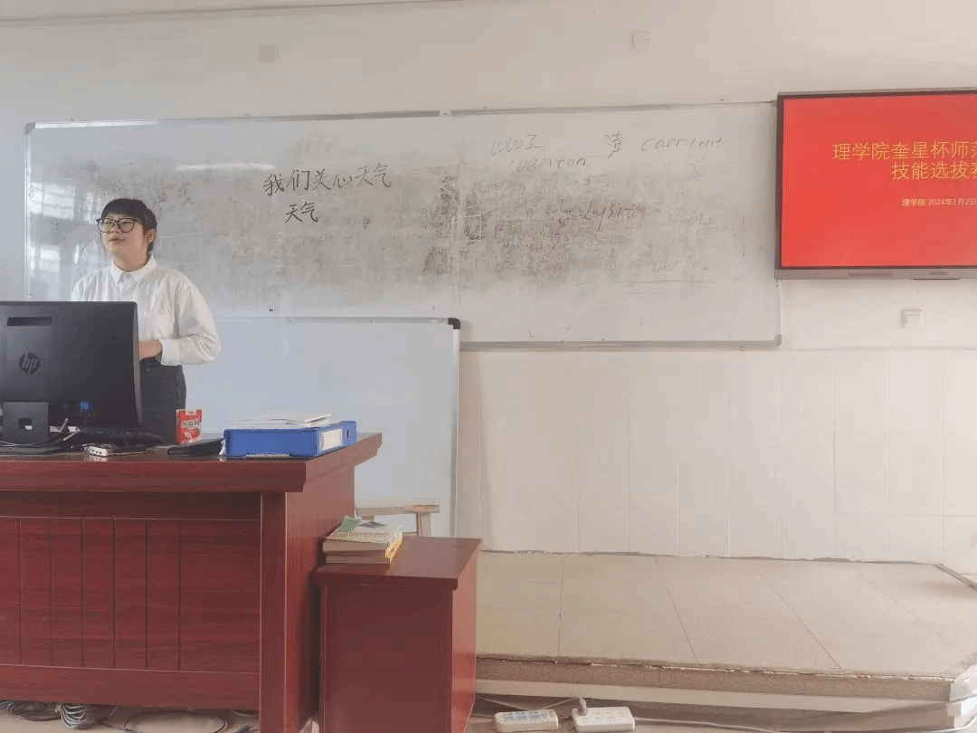 通过本次技能大赛,同学们发现了自己的不足之处,如粉笔字、普通话等能力基本功有待进一步加强训练和提升。希望参赛选手及其它同学能够以这次大赛为契机,再接再厉,求真务实,苦练基本功,不断提高师范生教育、教学水平。